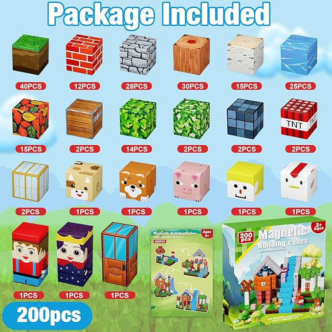 Fun Learning & Skill Development – With 200 magnetic blocks themed around forests and buildings, this set sparks imagination while enhancing focus, patience, and motor skills. Ideal for children aged 3 and up, it’s a fun way for kids to learn through play, discovering new worlds through building and rebuilding.