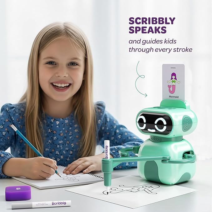 THE ROBOT THAT TEACHES YOU TO DRAW: Meet Scribbly — the interactive drawing bot that turns kids into artists! With step-by-step instructions, Scribbly speaks and guides every stroke, making learning to draw easy and fun.