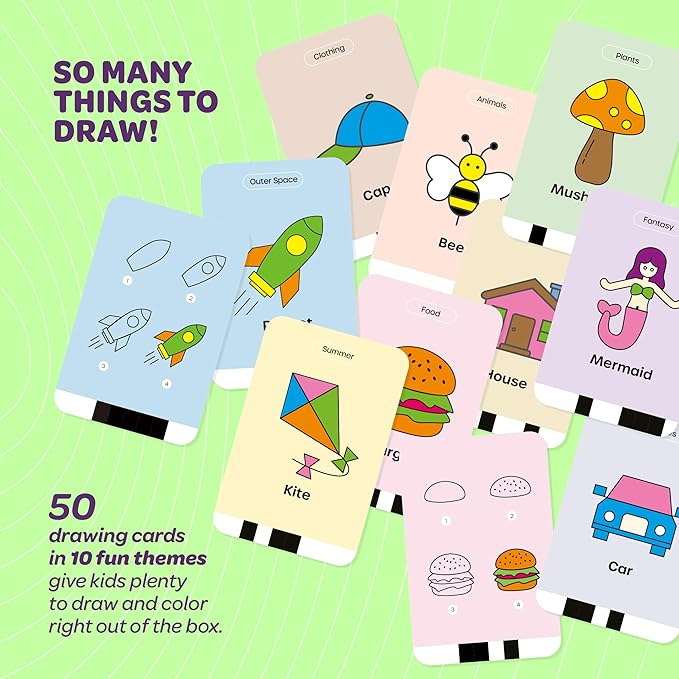 50 DESIGNS, ENDLESS INSPIRATION: From mermaids and unicorns to astronauts, cars, and kites — 50 guided designs across 10 themes keep creativity flowing and excitement to discover what you’ll draw next. Every drawing brings a new creation to sketch, color, and enjoy!