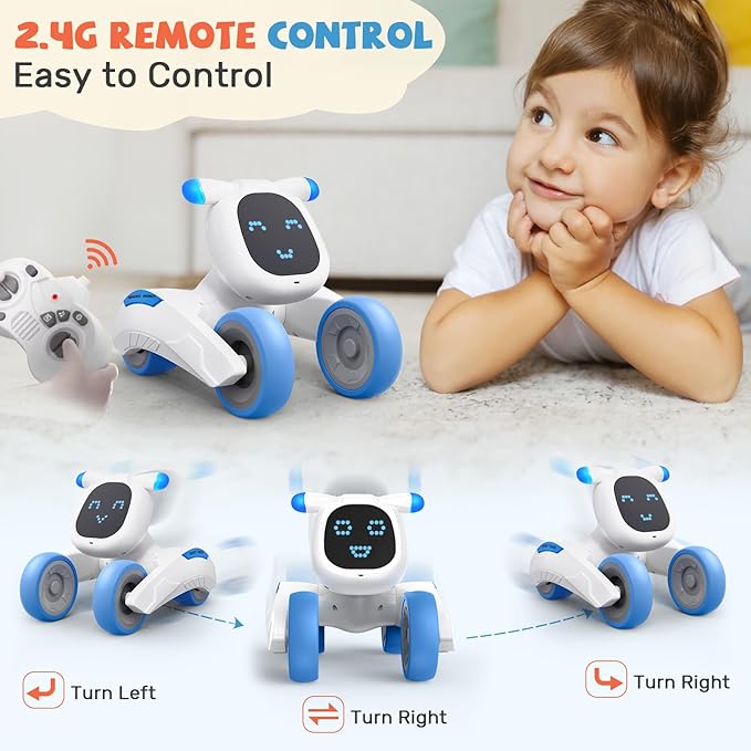 Smart Robot Dog Toy: This dog robot features glowing LED ears and an expressive LED face that easily captures children’s attention. This robot puppy toys for kids performs 14 fun dance routines to cheerful music, and its animated expressions spark creativity, seamlessly blending learning with enjoyment.