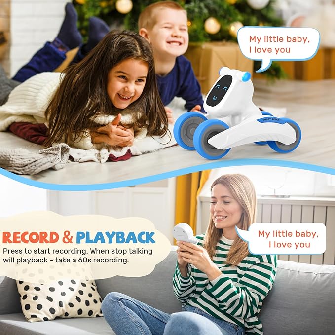 Record & Playback & Rechargeable: Add a personal touch by recording up to 60 seconds of voice messages, which can be replayed at the press of a button. The robo dog charges quickly via a Type-C cable, offering up to 50 minutes of continuous interactive playtime.