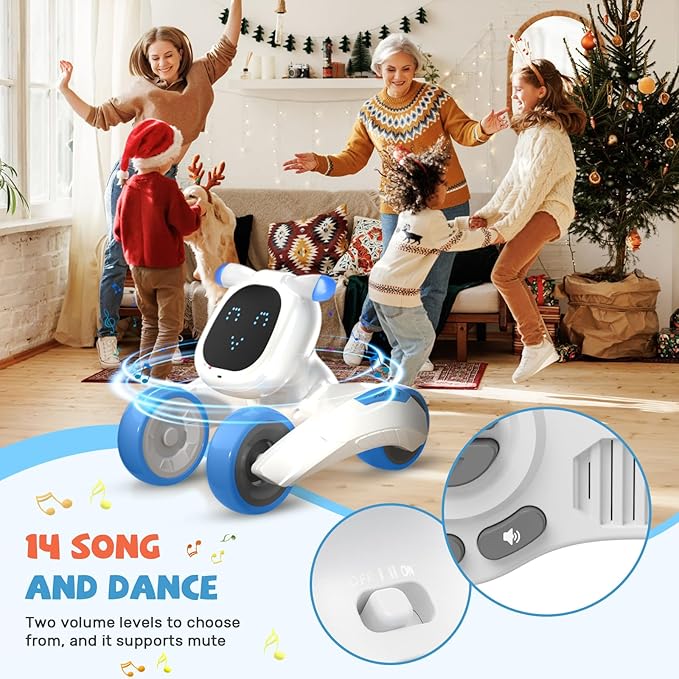 Voice-Activated Fun: This robot pet has 11 voice commands. Simply say, “Hey puppy, Happy Birthday,” and enjoy the Happy Birthday tune, or “Hey puppy, Merry Christmas” for festive songs. This feature makes interactions with kids more fun and engaging. (Supports English only)