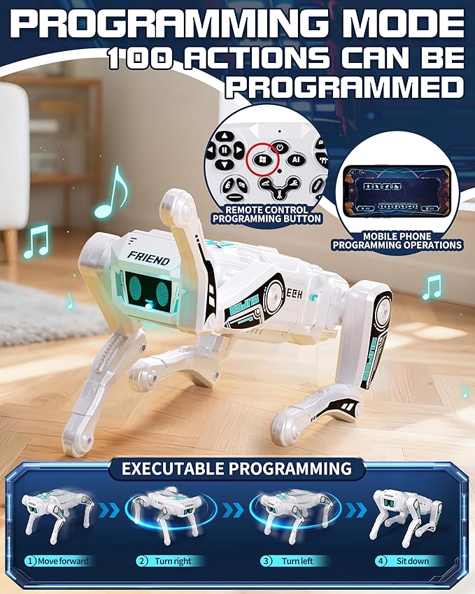 【4+ Intuitive Control Way】Effortlessly guide the robot dog via Gravity Sensor, Touch-Screen App, or the included Physical Remote. This variety offers a perfect blend of creative play and family entertainment for everyone.