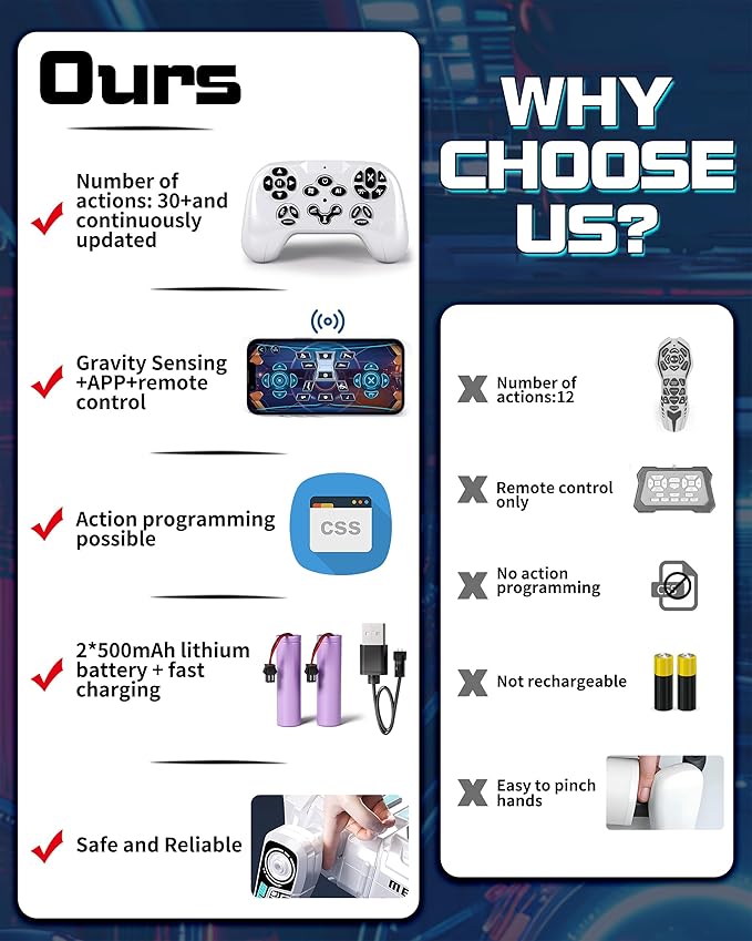 【STEM Learning & Custom Programming】Kids can design and command within 100 action sequences! This easy-to-use programming feature builds foundational logic, problem-solving skills, and imaginative thinking—an ideal gateway to robotics for ages 6-12.