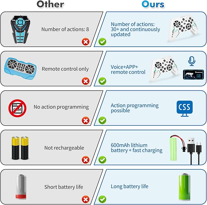 🚀Beyond Basic Robot Toys: Unlike cheap $30 gadgets, this robot dog features precision motors, 600mAh battery, and free app updates with new actions—grows with your child for years of smart play!