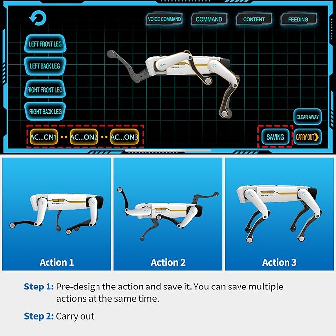 🤖30+ Lifelike Actions & Voice Commands: Watch your robot pet perform Kung Fu, handshakes, somersaults, and hilarious “pee attack” pranks! Control via English voice commands, touchscreen APP, or physical remote—perfect for creative play and family fun.